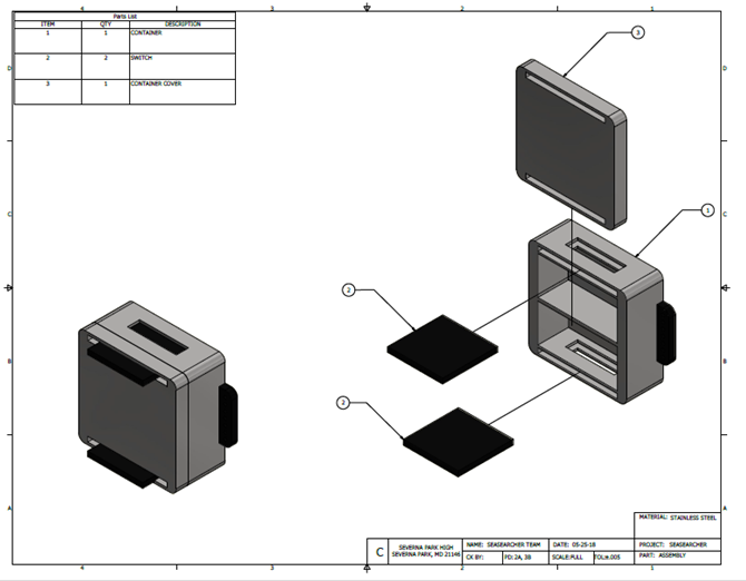 Each student designed an Automata box unique to their interests. Shown below is an explosion drawing of the parts used to create the box.