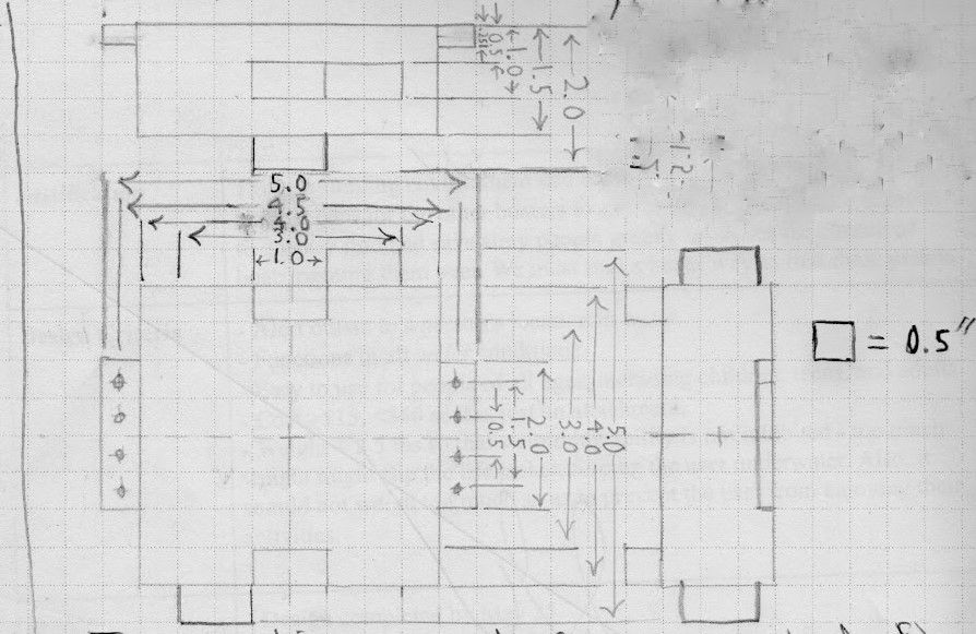 ![]() Concept SketchThe original concept sketch, showing how the puzzle cube would look when put together as well as the individual pieces. | ![]() Orange/Brown Piece Orthographic SketchesAfter the initial concept sketch, rough drafts of the orthographic sketches were created for each piece. As shown, they illustrate the top, front, and right view of each piece, thus facilitating the design process in Inventor. | ![]() Orthographic Drawing: White PieceAfter orthographic sketches were completed by hand for each piece, the pieces were created in Autodesk Inventor, and final orthographic drawings were made. The most complicated piece (white) is displayed. |